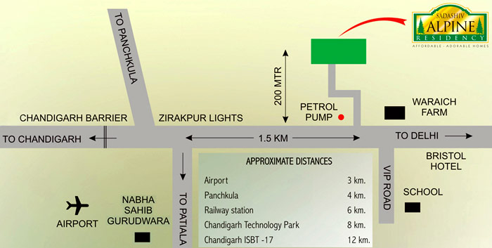 Alpine Residency is located on Chandigarh/Delhi highway at 1.5 kms distance from Zirakpur light points towards Ambala.The upcoming flyover and four-lanig in Zirakpur will provide easy and smooth connectivity to our project.